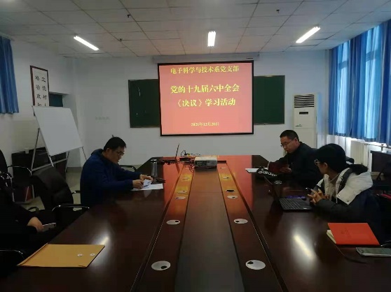 12月20日,电子科学与技术系党支部召开主题党日活动,集中学习了党的十九届六中全会精神。全体党员参加了此次学习会,会议由支部书记张志峰主持。