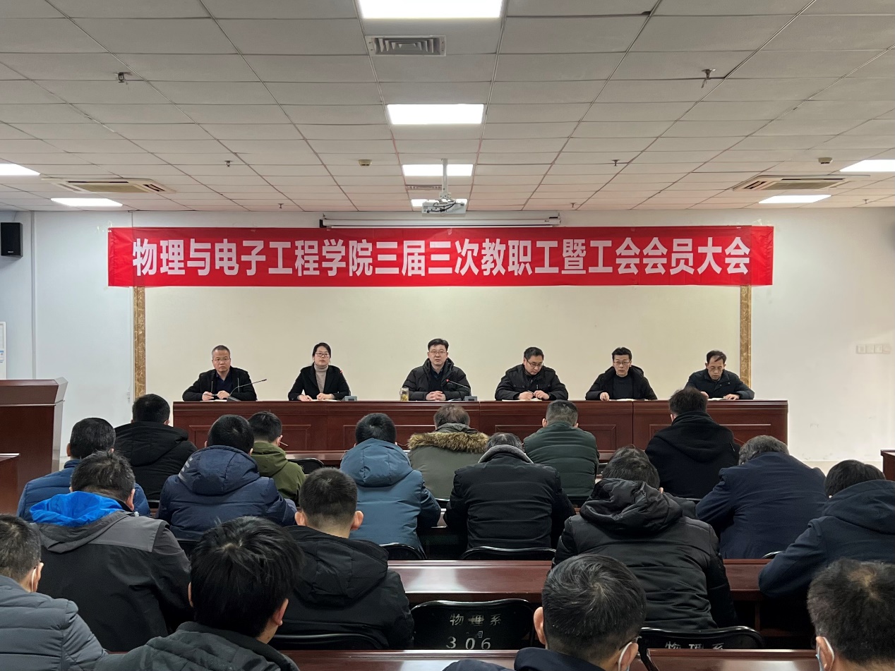 2月24日下午,物理与电子工程学院三届三次教职工暨工会会员大会在四教楼503会议室召开。大会由工会主席李玲主持。