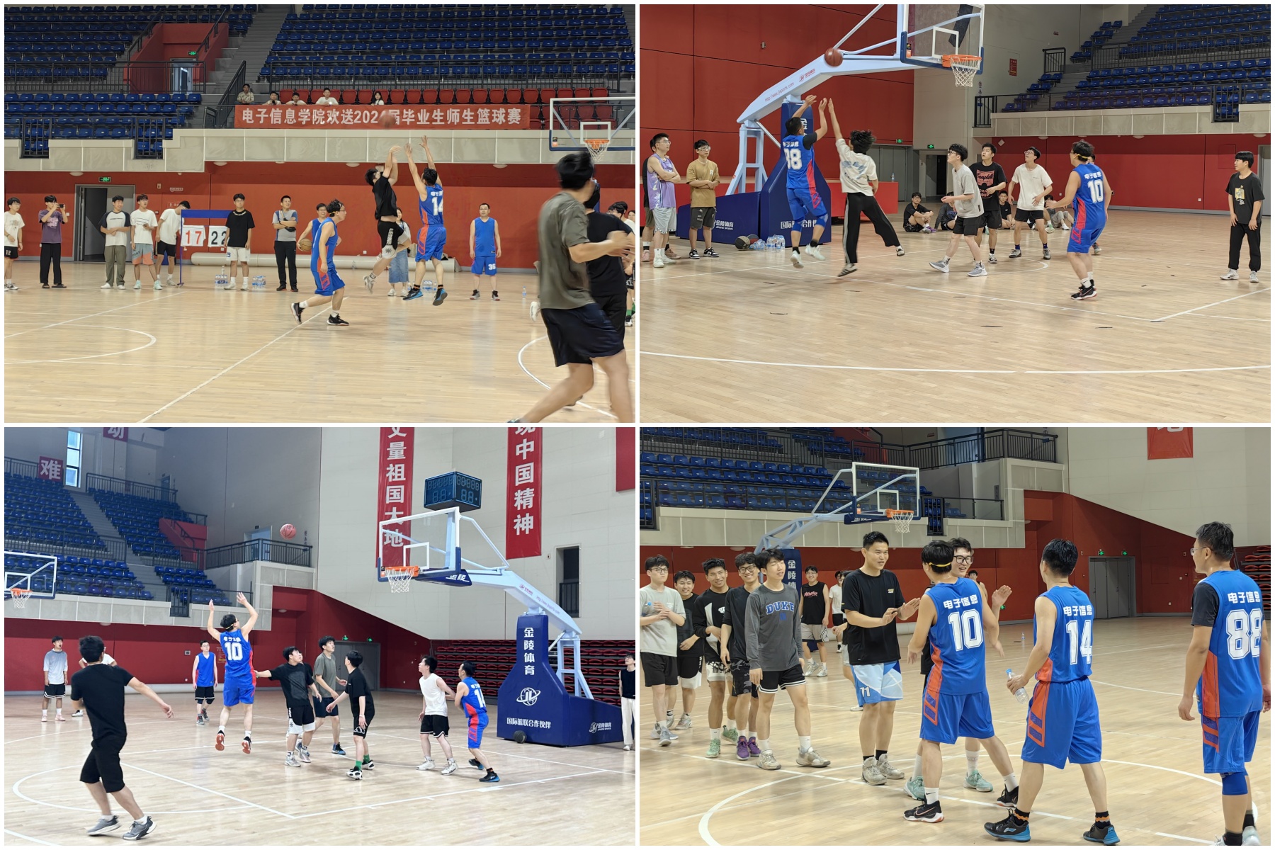 为营造温馨、和谐、文明的毕业生离校氛围,6月4日下午,电子信息学院在科学校区篮球馆举办欢送2024届毕业生师生篮球赛。