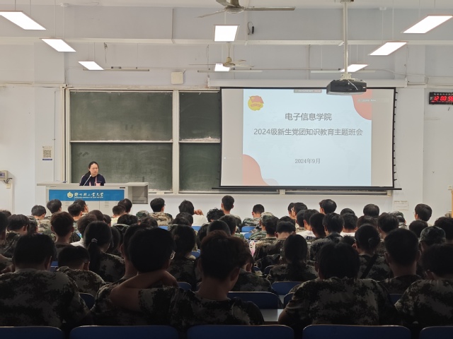 为了加强新生理想信念教育。9月20日中午,电子信息学院召开2024级新生党团知识教育主题班会。学院团委书记周芳华及2024级全体新生参加本次活动。