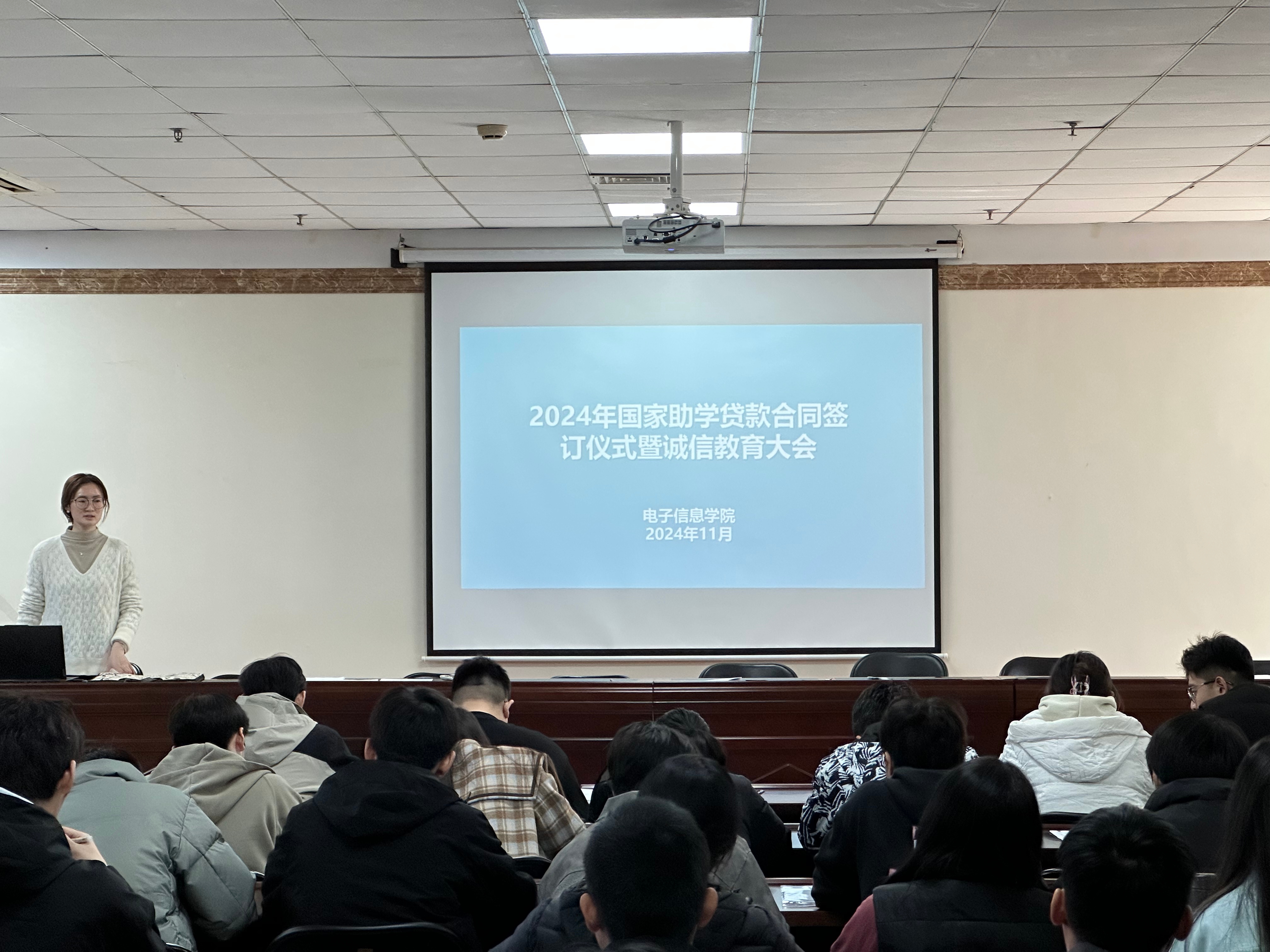 在科学校区四教楼503会议室召开了2024年国家助学贷款合同签订仪式暨诚信教育大会,学生资助工作专职辅导员杨若雨和申请2024年高校助学贷款的全体研究生、本科生、专升本学生参加了会议。