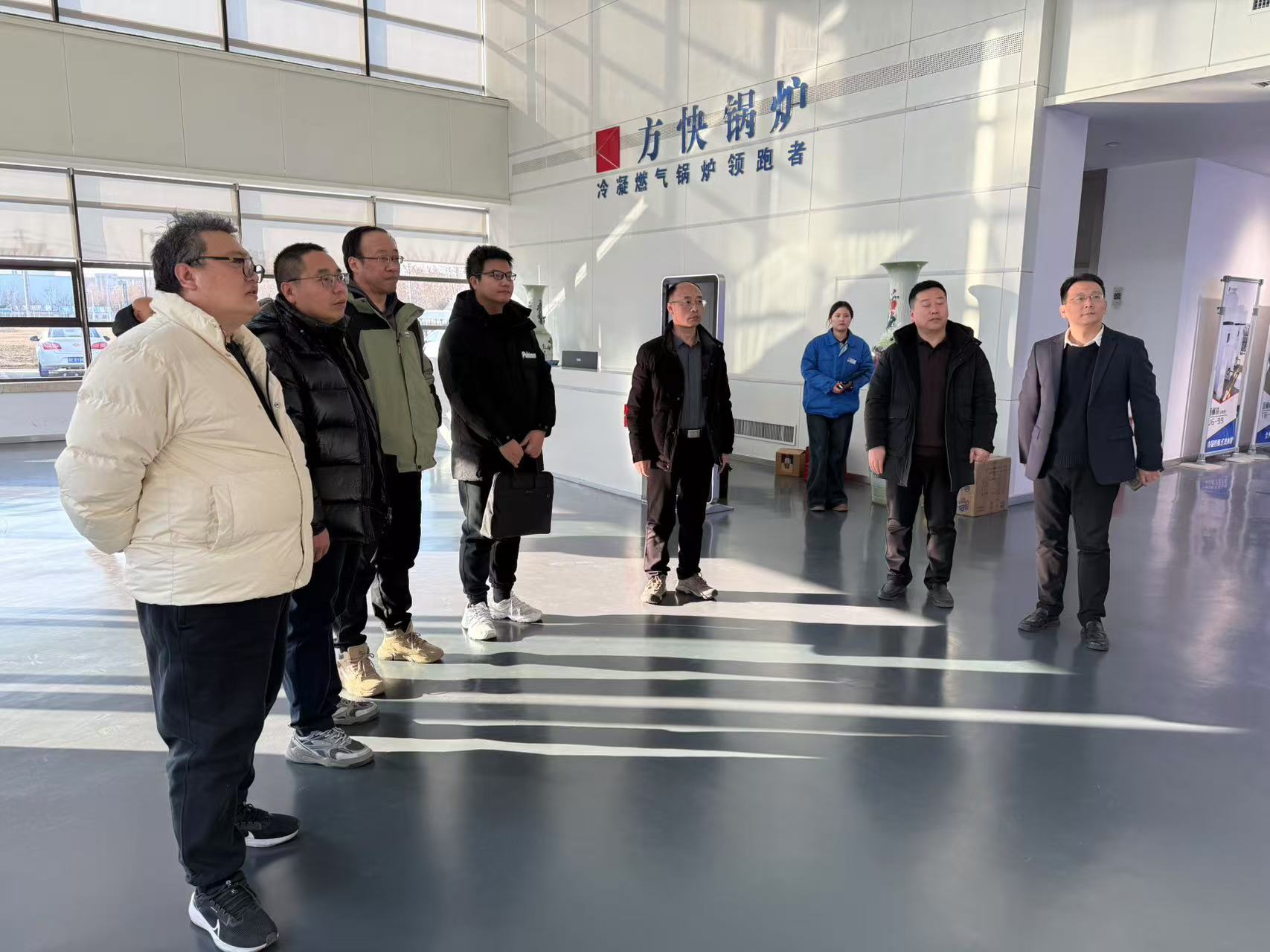 在安阳方快锅炉有限公司,人力资源部部长程利民对NBA中文网 一行的到访表示热烈欢迎,介绍了公司的发展概况、业务模块、发展前景等,并参观了公司的展厅。双方围绕校企融合、人才培养、产学研合作等进行了深入的交流和探讨,希望在联合申报省级项目、科技成果奖励和人才招聘方面加强合作。