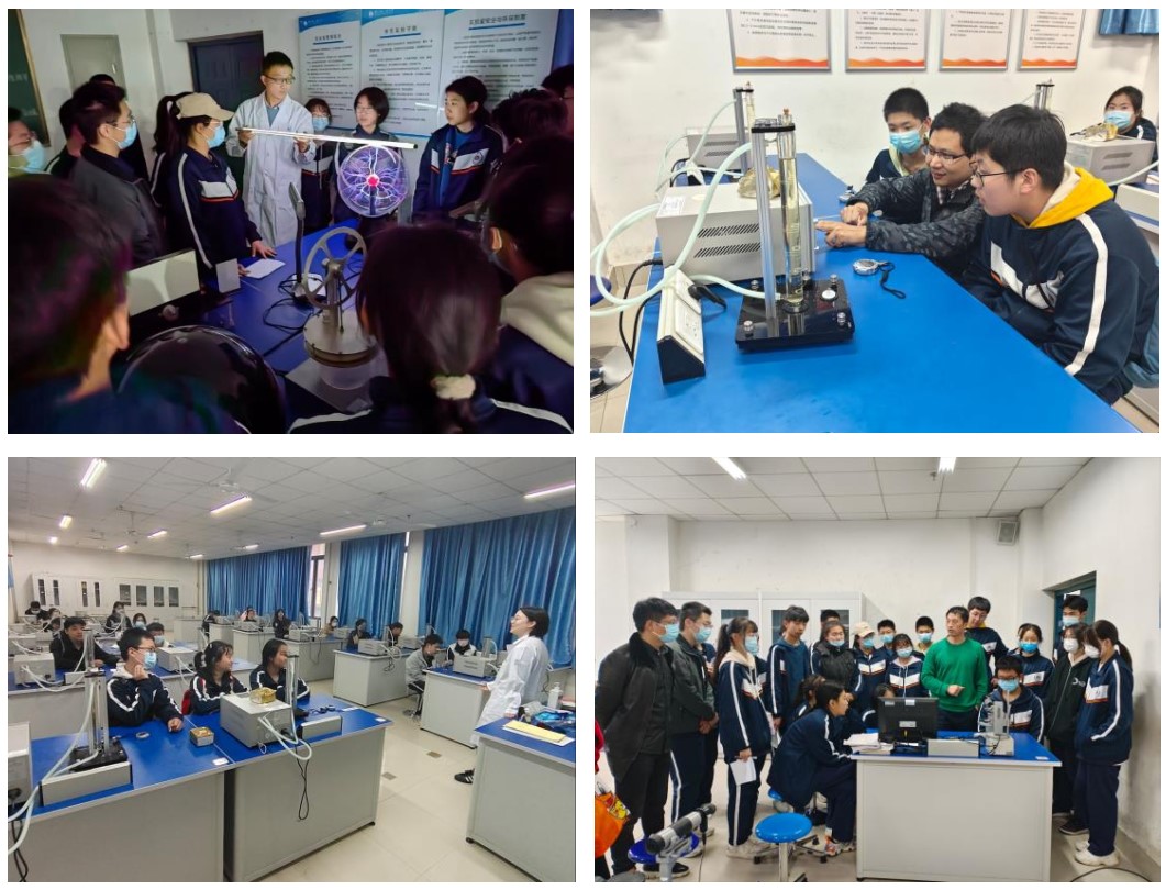 物理文化长廊包括“改变世界的物理学”系列,“诺贝尔奖”系列,“时间长河”系列,“科学史上的中国星”系列等展板,饮水鸟、外燃机、混沌摆,光栅立体图、视错觉图等模型及挂图200余项。演示实验室参观了飞机升力、辉光放电、超导磁悬浮、驻波、高压静电等数十个项目。教学实验室重点体验了液体粘滞系数的测量,学习分光计的调节和三棱镜顶角测量方法,观察棱镜色散现象。