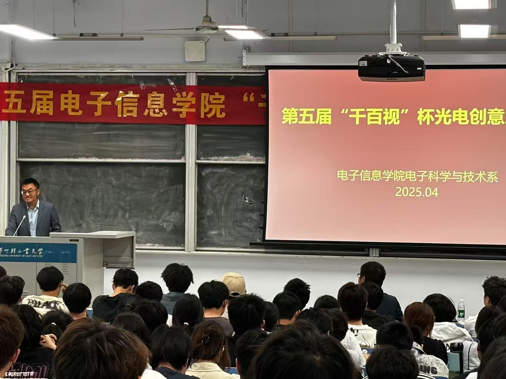 首先,张志峰主任致辞,并宣布活动开始;其次,郑州千百视光电科技股份有限公司段万通总经理介绍了公司的主营业务、公司发展及与电子科学与技术专业的合作历史,勉励学生珍惜当下,努力提高专业动手能力,成为一个对社会有用的人。杨红军老师向2024级电子科学与技术专业全体学生详细介绍本次比赛规则、评比方法、注意事项并分发比赛相关套件。通过相关企业对本次比赛的支持和协作,开创了电子科学与技术专业产教融合的新局面。