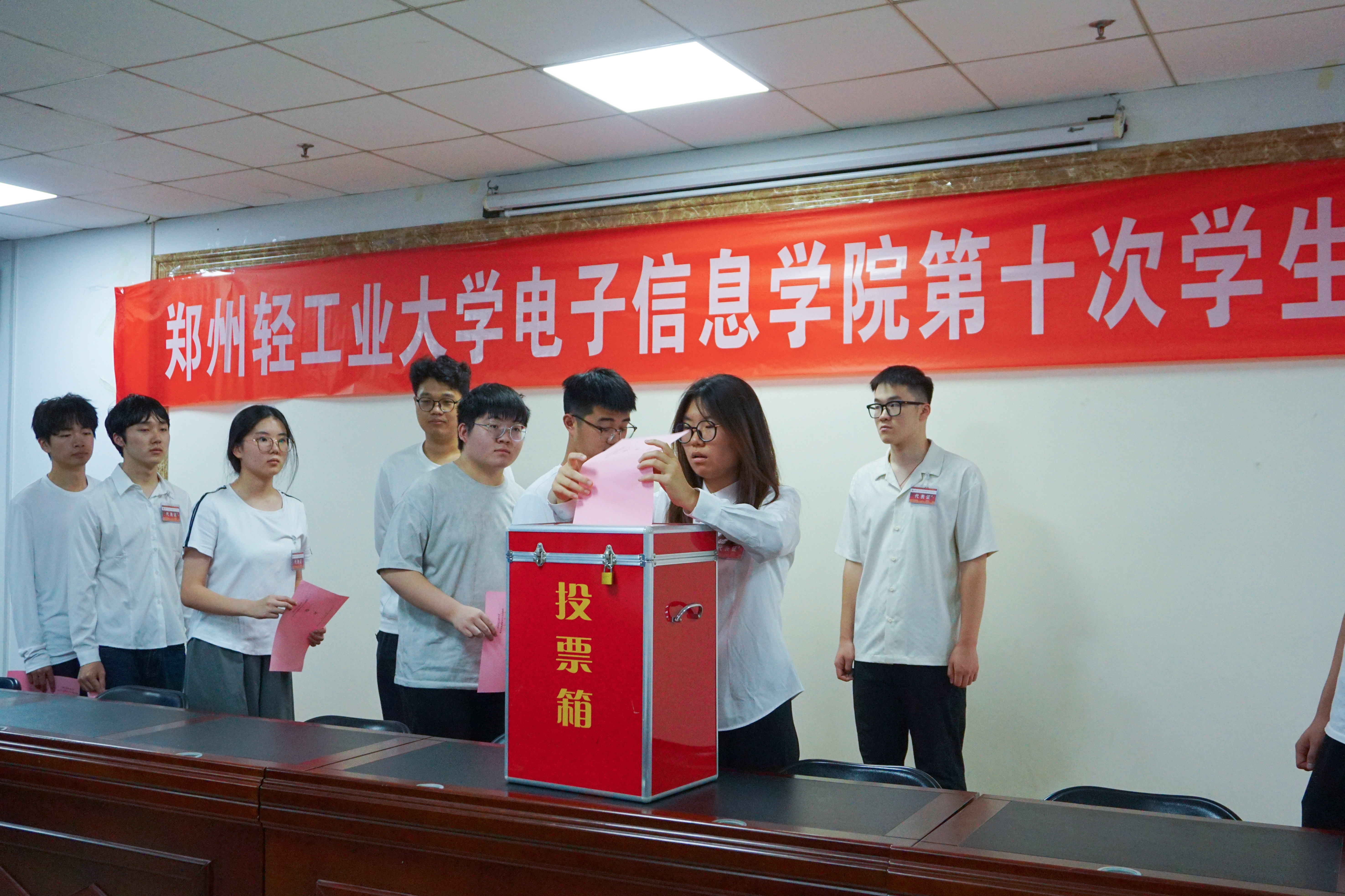 6月12日下午,郑州轻工业大学NBA中文网 第十次学生代表大会在四教楼503会议室隆重召开。学院党委书记赵阳、党委副书记李玲、团委书记周芳华、学工办主任王伟夙、组织员李夏楠、校学生会主席团成员靳印及学生代表参加了本次大会。