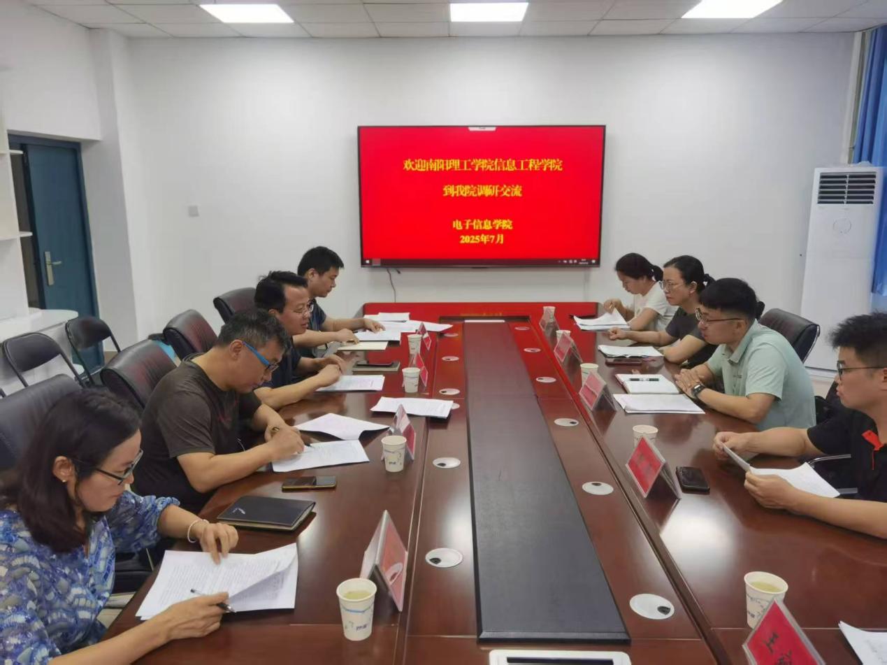 7月2日,南阳理工学院信息工程学院电子信息工程专业孙曦主任一行5人到NBA中文网 调研交流。座谈会在四教楼310会议室举行,副院长冯学超、电子信息工程系主任夏永泉及部分骨干教师参加座谈会。