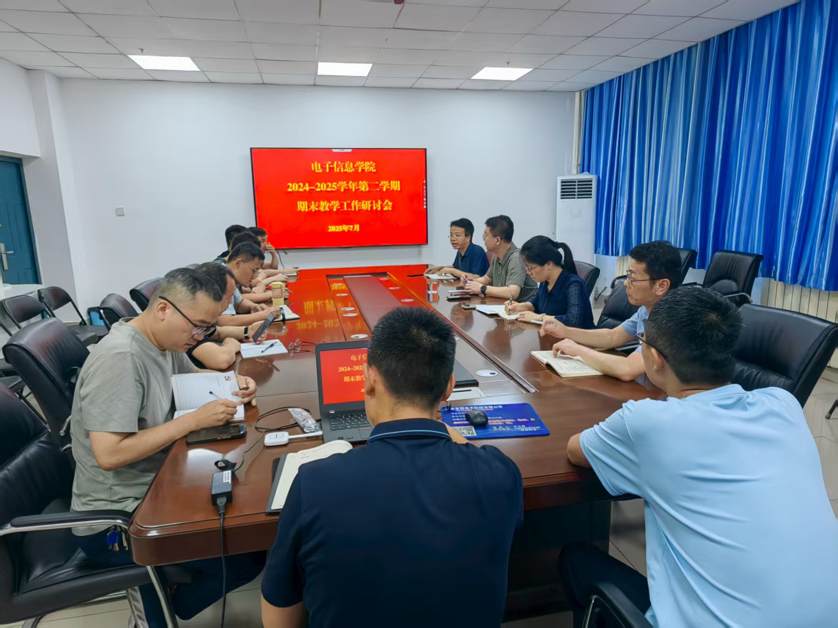 研讨会分为两个阶段进行。第一阶段,与会人员围绕专业建设、数智课程建设和教材建设展开了深入研讨。电子信息工程和通信工程专业负责人结合专业评价指标体系做了汇报介绍,详细阐述了本专业的建设现状以及未来的发展建设思路。第二阶段的研讨聚焦于2025版人才培养方案的完善和定稿。结合学校最新要求,与会人员对人才培养方案进行了优化完善,进一步明确了培养目标与课程体系的匹配度,细化了实践教学环节的具体安排。