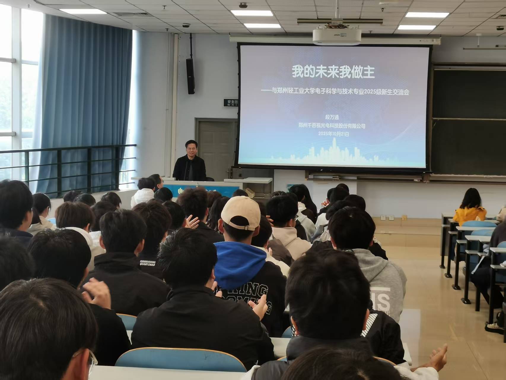 报告的主题是“我的未来我做主”,段万通董事长围绕“上学经历、创业过程、公司简介、LED的工作原理与应用、创业感悟、新生寄语”六个方面系统展开阐述。他分享了自己在大学时代的创业经历,结合当前行业发展形势、公司发展重要节点及创业感悟,列举具体事例、引用名人名言,引导学生积极接纳专业,学习好专业;深刻剖析专业内涵,帮助学生明晰专业的重要性,有效激发学习主动性、调动学习积极性,点燃了大家为电子信息类行业发展贡献力量的热情,进一步深化了同学们对专业的认同感与使命感。现场反响热烈,同学们纷纷表示受益匪浅。